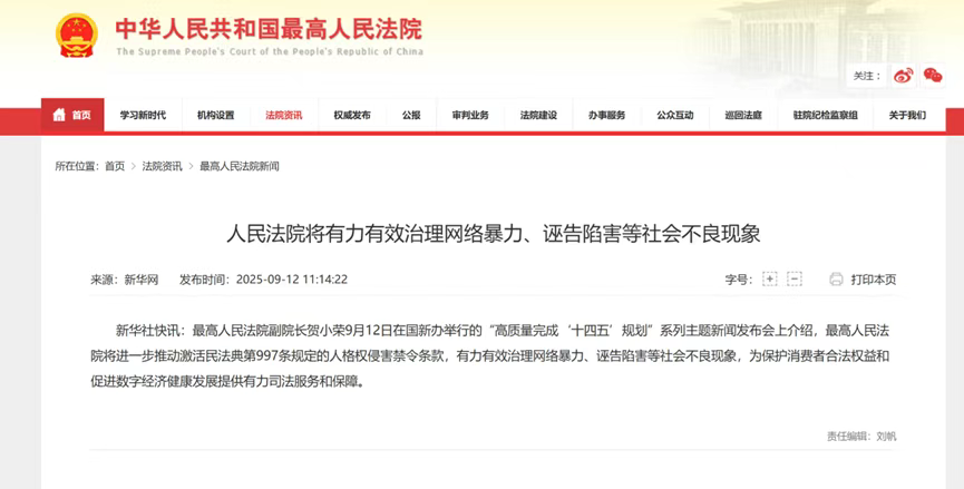 近日,最高人民法院副院长贺小荣公开表示,最高人民法院将进一步推动激活民法典第997条规定的人格权侵害禁令条款,有力有效治理网络暴力、诬告陷害等社会不良现象,为保护消费者合法权益和促进数字经济健康发展提供有力司法服务和保障。